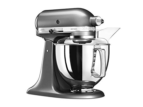 Standartzubehör: 4,8 Liter Edelstahlschüssel (ergonomischer Haltegriff / Spülmaschinenfest) , 3 Liter Edelstahlschüssel (poliert / Spülmaschinenfest), Spritzschutz unter Einsatz von Einfüllschütte, Schneebesen unter Einsatz von 6 Drähten, Flachrührer, Flexi-Rührer, Knethaken