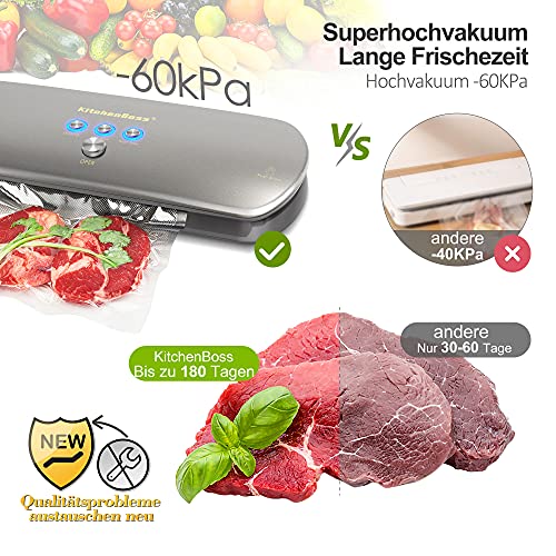 KitchenBoss 3-in-1 Vakuumiergerät für Trockene und Feuchte Lebensmitteln, Automatisch/Manuelles Vakuum-Verschluss-System…