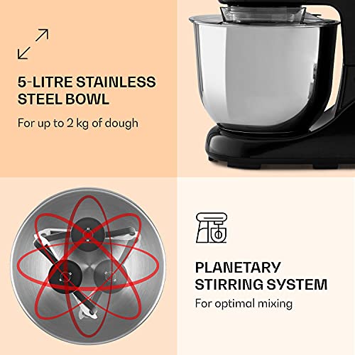 Klarstein Knetmaschine Küchenmaschine zum Backen, 1300W Teigmaschine Klein, 6 Stufen, Schneebesen Rühr- & Knethaken, 5L…
