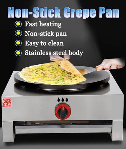 Verdickte große Pfannkuchenplatte: Der kommerzielle Gas-Pfannkuchenmaker hat eine 15,7 Zoll große, 20 mm dicke Pfannkuchenplatte, die schnell erhitzt werden kann und aus antihaftbeschichtetem Aluminium besteht, das nicht kratzt oder Flecken hinterlässt.