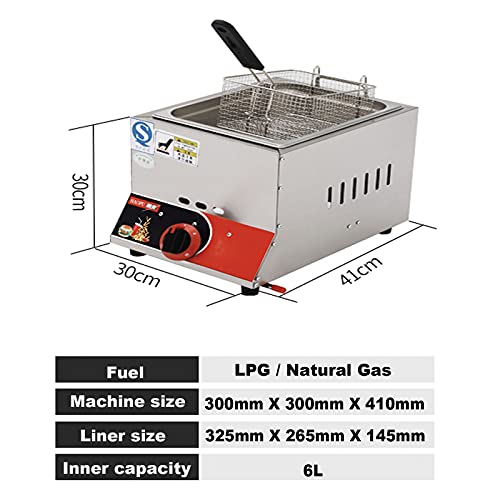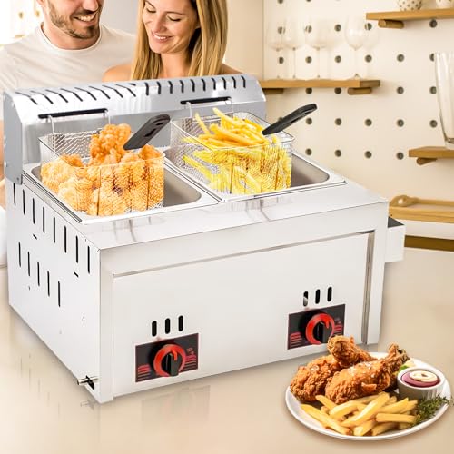 Kommerzielle Gas-Fritteuse, 22 l, großes Fassungsvermögen, Edelstahl, herausnehmbare Körbe, einstellbare Wärmesteuerung, leicht zu reinigen