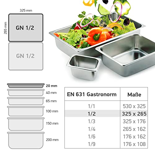 Konzept 11 – GN Behälter (GN 1/2, Höhe 20 mm) Edelstahl Warmbehälter 1,25 Liter, Pizza Zutatenbehälter, Gastro Behälter verschiedene Größen und Höhen, Gastro Normschale, Gastronorm Behälter