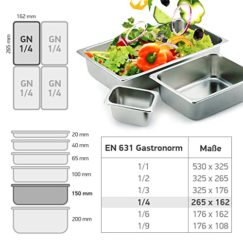 Konzept 11 – GN Behälter (GN 1/4, Höhe 150 mm) Edelstahl Warmbehälter 4 Liter, Pizza Zutatenbehälter, Gastro Behälter verschiedene Größen und Höhen, Gastro Normschale, Gastronorm Behälter