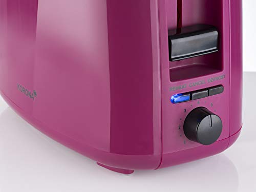 Korona 21134 Toaster | Beere | 750 Watt | Brötchenaufsatz | 2 Brotscheiben | Krümelschublade, Berry
