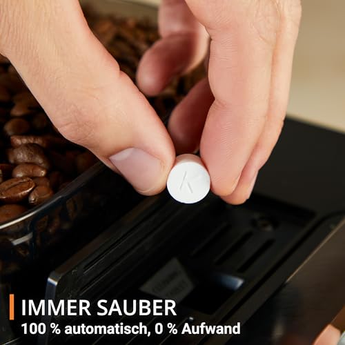 100% AUTOMATISCH, 0% AUFWAND: Reinigen Sie immer mit einem automatischen gründlichen Pflegezyklus 3 Mal jährlich, ohne Ausbau der Brühgruppe, nichtsdestotrotz eine einzige Reinigungstablette