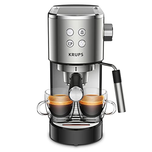 Krups Virtuoso XP442C Siebträgermaschine | Espressomaschine | mit Milchschaumdüse | 15 bar Pumpendruck | nur 15 cm breit…