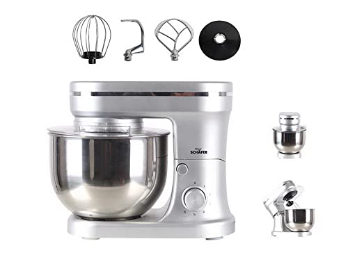 🧁【3,5L EDELSTAHLSCHÜSSEL】Die 3,5L Edelstahlschale bietet ausreichend Platz, um problemlos Kuchen, Kekse und Waffeln zuzubereiten. Zu den multifunktionalen Zubehörteilen gehören ein Schneebesen aus Edelstahl, ein Teighaken aus Aluminium, ein Rührstab und Teigschaber. Küchenmaschinen mildern die Werk in der Küche und machen das Backen sehr interessant!