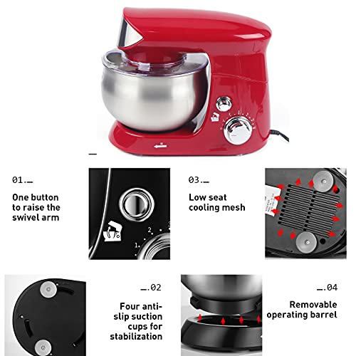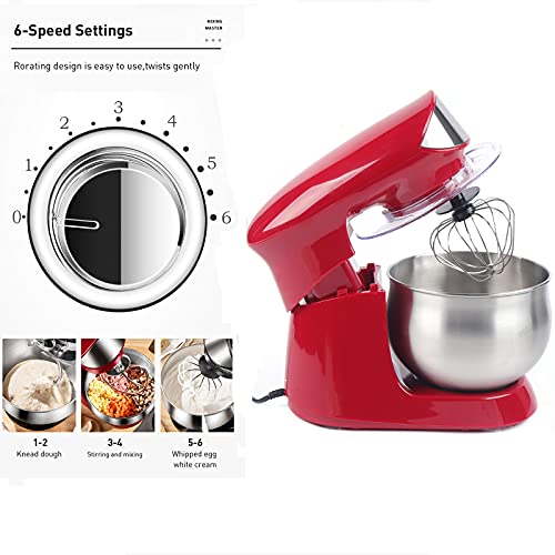 🧁【6 GESCHWINDIGKEIT Knetmaschine 】1/2 Bereich ist eine sanfte-Rühren, geeignet für gemischte Salate und Nudeln. 3/4 Bereich ist ein Mittelklasse-Rühren, das entsprechend Ihren spezifischen Anforderungen an die Zutaten ausgewählt werden kann. 5/6 Bereich ist eine kräftige-Rühren,geeignet zum Schlagen von Eiweiß und Sahne.