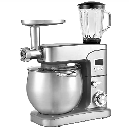 【3 IN 1 MULTIFUNKTIONAL】 Die Vospeed Küchenmaschine ist mit einem 1,5 Liter Profimixer und einem Fleischwolf ausgestattet. Er ist die ideale Wahlgang, um große Mengen Sahne, Smoothies und Frozen Drinks zu Hause zuzubereiten. Mit dieser Küchenmaschine können Sie Kuchen, Nudeln, Brot, Kekse, Gebäck, Muffins, Waffeln und ganz einfach Säfte und Smoothies zubereiten. Eine Luftfahrzeug kann die Bericht von drei Maschinen anhaken.