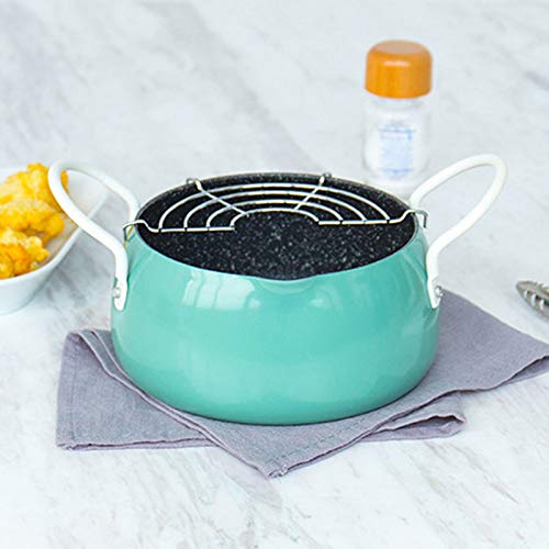 KUOYTT Tempura-Fritteuse, Binaurale Feine Haushaltsküchen-Kochfritteuse, Runder Frittiertopf Mit Ölsieb, Für Gas- Und Induktionsherde,Grün