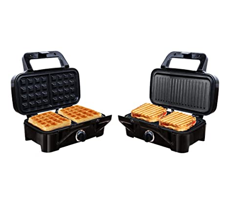 Waffeleisen und Grill in einem Gerät: 2 Sets herausnehmbare Platten für Waffeln, Sandwiches, Panini, Grillen – vom hausgemachten Fast!