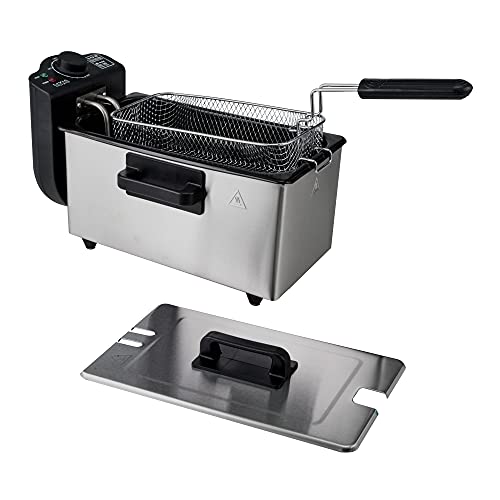 Moderne und stilvolle 3-L-Fritteuse zum Essen zubereiten köstlicher und leicht frittierter Speisen zugunsten Ihre ganze Familie und Freunde. Dank des abnehmbaren, emaillierten Frittierbehälters leicht sauber zu halten. Der Rahmen besteht jeder strapazierfähigem und elegantem Edelstahl.