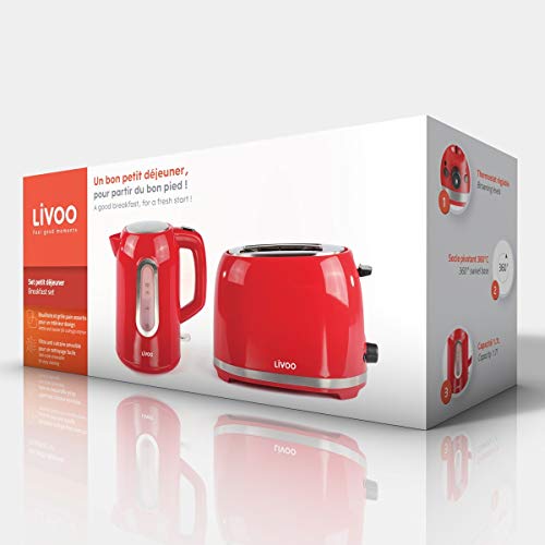 Livoo DOD160R Frühstücks-Set, elektrisch, 1,7 l, mit Toaster, 2 Schlitzen, Rot