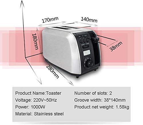 LKNJLL Toaster 2-Scheiben, 5 Bread Shade Einstellungen Toaster Öfen, Extra Wide Slots, Edelstahl Toaster for Waffel…