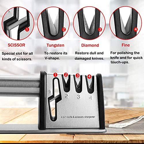 Multifunktional: Der professionelle Messerschärfer ist äußerst effektiv und langlebig für die Verwendung von Küchenmessern mit gerader Kante aufgebraucht Stahl, Scheren und alkoholisiert gezackten Messern (Brotmessern). einschließlich Messer mit Klingen aufgebraucht gehärtetem Stahl. Verwenden Sie es zu Hause, im Freien oder sogar unterwegs beim Camping.