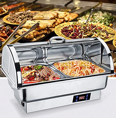 Haltbarer Edelstahl – Eine langlebige Edelstahlkonstruktion stellt stabil, dass dieser chafing dish Buffetwärmer elektrisch für den täglichen Gebrauch gebaut ist und gleichzeitig ein zeitloses Erscheinungsbild bietet, das sich in Ihr klassisches Dekor einfügt. Es wurde entwickelt, um den Deckel in einer aufrechten Position zu halten, nachdem die Speisen in der großen Chafer-Pfanne serviert werden