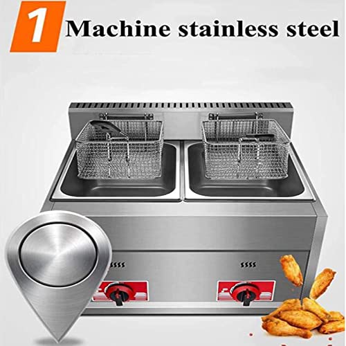 LYDBMYT Kommerzielle Fritteuse, Pommes Frites 10l + 10l Fritteusen mit Korb, elektrische Fritteuse aus Edelstahl für die Arbeitsplatte, für Küche und Zuhause