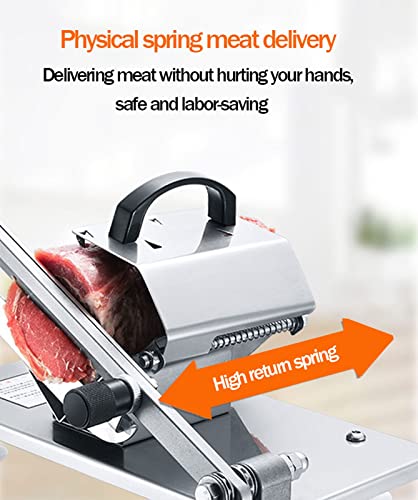 [Zeit und Mühe Sparen]: Mit diesem aufschnittmaschine müssen Sie nicht zum koreanischen BBQ, Shabu Shabu, essen gehen und Sie müssen nicht mehr Geld für vorgeschnittenes Essen ausgeben, wodurch Sie Geld sparen. Gleichzeitig spart das Sensen von gefrorenem Fleisch Zeit und Mühe.