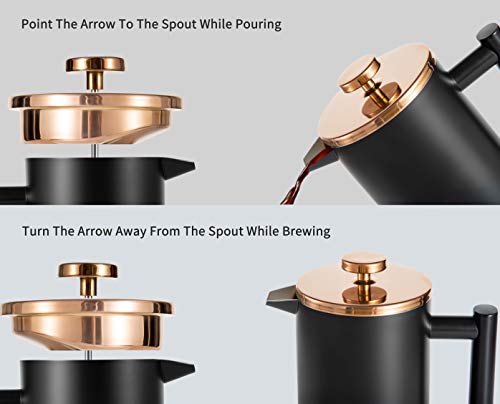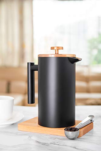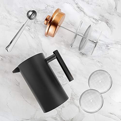 MeelioCafe Kaffeebereiter French Press 1 Liter Klein Kaffeezubereiter Doppelwandige Edelstahl Französische Kaffeepresse…
