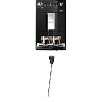 Melitta Purista F 230-102 Kaffeevollautomat mit flüsterleisem Kegelmahlwerk (Direktwahltaste, 2-Tassen Funktion, 20 cm Breite) schwarz + Milchlanze für Kaffeevollautomaten, Edelstahl, Schwarz