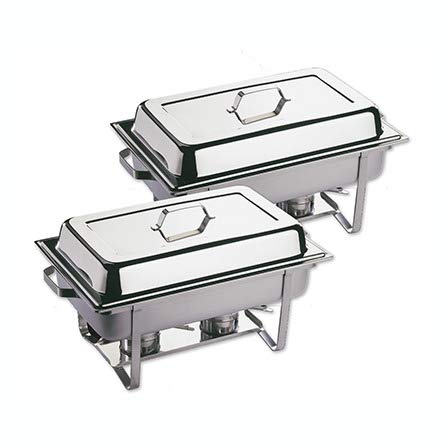 – rechteckiger Chafing Dish zum Erhitzen und Warmhalten von Speisen
