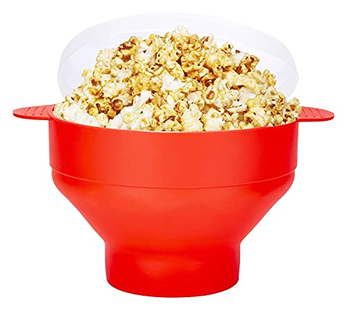 Microwave Popcorn Maker, zusammenklappbare Silikonmikrowellen-Heißluft-Popcorn-Schüssel mit Deckel und Griff, großes…