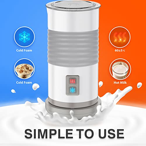 EIN DRÜCKEN FÜR HEISSES UND KALTES KÖSTLICH,SCHNELLER、LEISER UND SICHERER – Es dauert nur Sekunden, um professionellen ♨ heißen & ❄ kalten Milchschaum zu machen, indem Sie die 2 intelligenten One-Press-Tasten mit Kontrollleuchten am Milchaufschäumer/Dämpfer drücken, und es schaltet sich automatisch aus, wenn Milchschaum oder heiße Milch fertig ist
