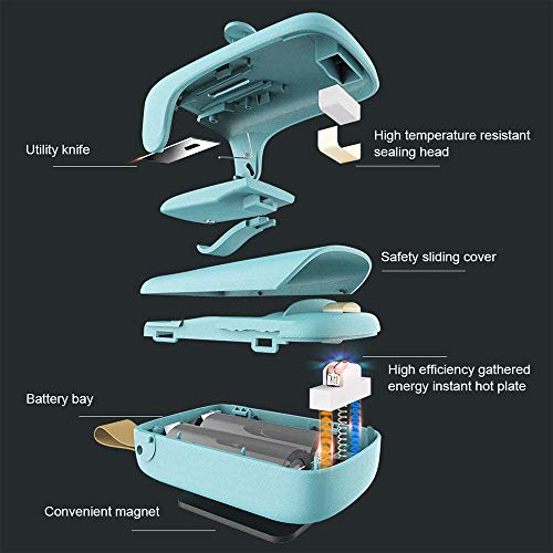 Sicherheit: Dieser Chip Bag Sealer besteht aus hochwertigem Antiblockiersystem-Material und hat ein sicheres Strukturdesign. Das Heizblech ist unter der Öffnung versteckt und durch eine verschiebbare Sicherheiten geschützt, die sich nicht berühren lässt und nicht verbrüht. Der Cutter befindet sich unter der Sicherheiten und Sie müssen den Knopf schieben, um ihn zu öffnen.
