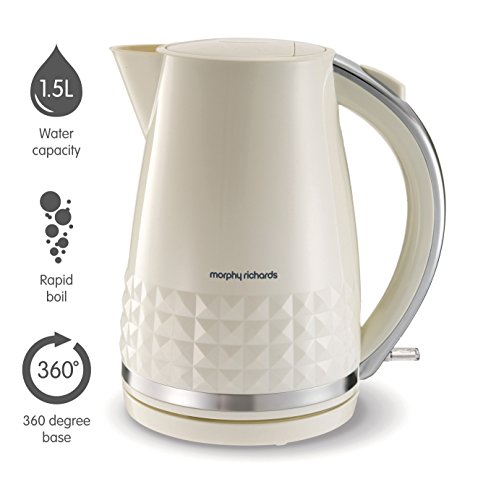 Der Morphy Richards Dimensions Krug Wasserkocher ist ein stilvolles, hochwertiges Murl mit trendigem, gemustertem Kunststoff, Edelstahlrand und einem glänzenden Finish. Mit Beleuchtung und leicht sichtbarem Wasserfenster. Die große Kapazität von 1,5 l in Kombination mit dem Schnellkochelement ermöglicht schnelles Kochen von bis zu 6 Tassen. Der abnehmbare Kalkfilter dieses Morphy Richards Wasserkochers sorgt für ein hochwertiges Heißgetränk und der 360°-Sockel ist ideal für Links- und Rechtshänder. Das stilvolle Design dieses Morphy Richards Wasserkochers kombiniert mit interner Kabelaufbewahrung bedeutet, dass Ihr Wasserkocher fortlaufend gepflegt auf Ihrer Küchenarbeitsfläche aussieht. Passende Toaster sind erhältlich für diesen Morphy Richards Wasserkocher für einen besoffen abgestimmten Look.