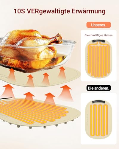【Gleichmäßige Erwärmung auf der Oberfläche】: DieWarmhalteplatte SpeisenwäRmer ist mit großen und gleichmäßig verteilten Heizdrähten ausgestattet, um eine gleichmäßige Wärmeverteilung und schnelle Erwärmung zu gewährleisten. Die große 40,3 x 59 cm große Heizplatte bietet Platz für eine Vielzahl von Geschirrteilen gleichzeitig und hält Speisen warm