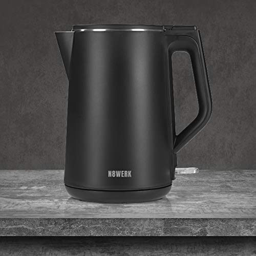 N8WERK Wasserkocher mit Doppelwand-Design in der Midnight Black Edition | Fassungsvermögen 1,5 Liter, kabeloser…
