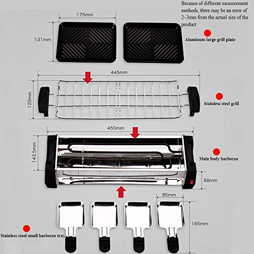 [Großer Grilldraht] Geringe Geruchs- und Rauchentwicklung durch Verwendung mit wassergefülltem Tablett Gehäuse aus emailliertem Stahl. Abnehmbares Heizelement und Grilldraht. Mikrosicherheitsschalter, Heizelement schaltet sich beim Ausbau automatisch aus.
