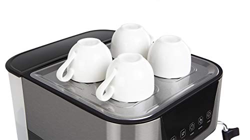 Berührungsempfindliches Steuerpaneel Mit Hilfe von Leuchtanzeigen zur einfachen Verwendung, transparentem Wassrbehälter von 1,5 Liter, der die Wassermenge im Antrieb sichtbar macht, Sicherheitssystem gegen Überhitzung des Weiteren Tablett oben zum Warmhalten von Tassen, dauernd oder punktuell