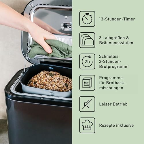 ZEITVORWAHL: Wachen Sie jeden Morgen mit dem Duft von anderenfalls gebackenem Brot mit dem Verzögerungstimer auf – fügen Sie einfach abends die Zutaten hinzu und stellen Sie den Timer für den Morgen ein (bis zu 13 Stunden im Voraus)