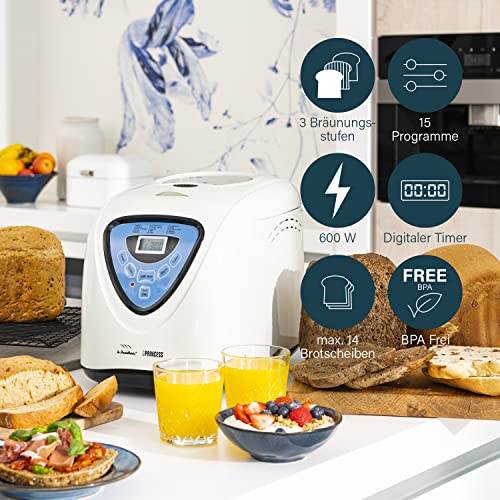 Princess 152006 Brotbackautomat Brotbackmaschine, 15 Programme und Glutenfrei Backprogramm, bis 900 Gramm Brotgewicht…