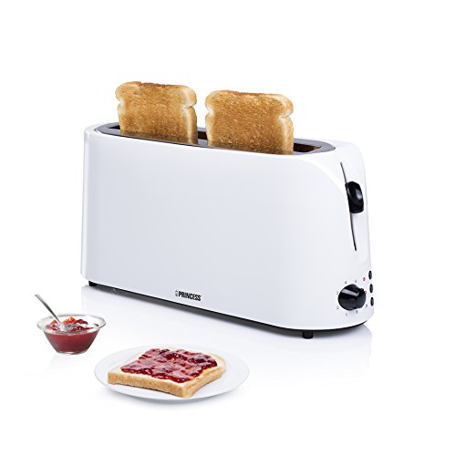 Princess Toaster Cool, mit langem Schlitz für 2 Scheiben, Auftau- und Aufwärmfunktion, Krümelfach, 1000 Watt, weiß…