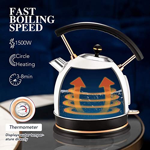 🍵【Schnell kochend】1.8L / 1500W, One-Touch-Schalter-Bedienung mit dem hellen LED-Indikator-Wasserkocher, völlig kabellos, wenn Sie die Basis verlassen, der Wasserkocher dreht sich um 360 Grad, kann die Wassermenge genau messen, Thermometer-Zifferblatt ist bequemer für Sie, um heißes Wasser vorzubereiten, genießen Sie schnell Tee, Wasser und Kaffee.