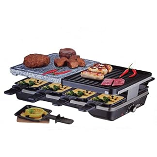 Raclette Bratrost DUO anstelle 8 Personen – Naturgrillstein ebenso Antihaft Grillplatte 1200 Watt.