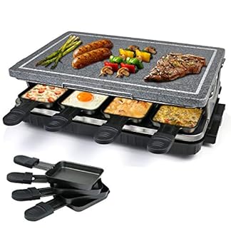 Raclette Grill mit Naturstein Platte 8 Mini Pfännchen Stufenlose Temperaturregelung Tischgrill für 8 Personen 1300W…