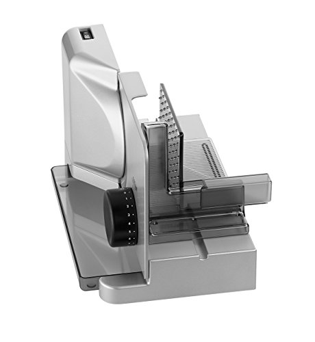 Leistungsumfang: Allesschneider silbermetallic über Wellenschliffmesser, Schneidgut-Auffangschale, Schneidgutschlitten, Restehalter, Schema