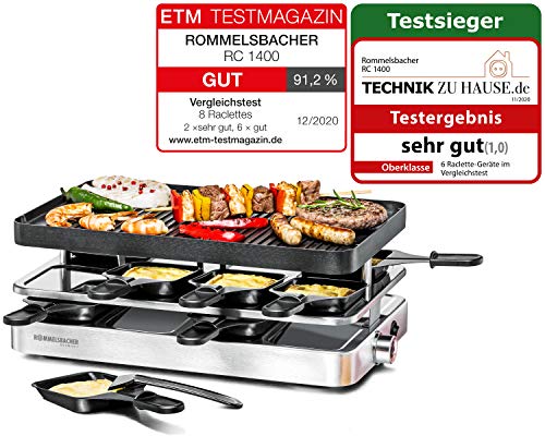 ROMMELSBACHER Raclette Grill RC 1400 – Wendeplatte zum Grillen & für Crepes, 8 Pfännchen, Antihaftbeschichtung, Ein…