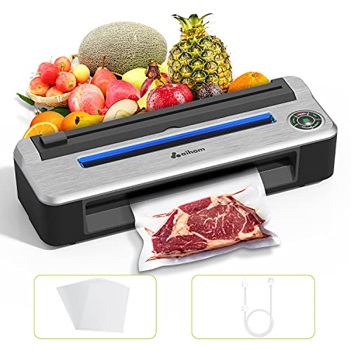 Vakuumierer inkl. 15 Beuteln (5x 10 x 15 cm, 5x 20 x 30 cm, 5x 28 x 40 cm), Vakuumier-Schlauch mit 2 Aufsätzen, Ersatz-Abdichtring und deutschem Handbuch. Folienschweißgerät-Vakuumierer – Außerdem relevant oder passend zu: Frischhaltedosen, Vakumierbeutel, Vakuumbeutel, Schweißgerät, Kühlschrank, Mikrowelle, Brotdose, Lunchbox, Messer, Dose