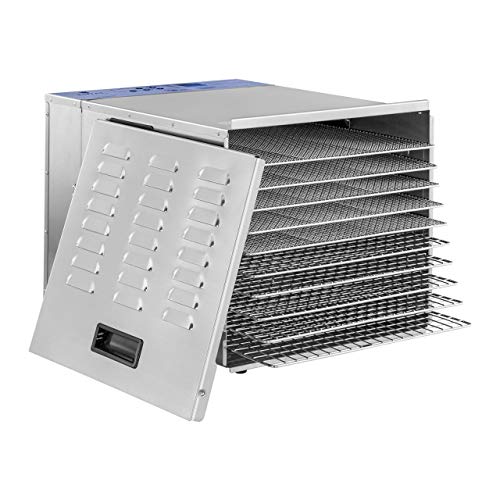 In der großen, 57 Liter fassenden Dörrkammer bieten die 10 mitgelieferten Trockenetagen genügend Platz, um eine große Betrag an Lebensmitteln gleichzeitig zu dehydrieren. Die Wärme der Dörrkammer wird vom integrierten Ventilator gleichmäßig im Inneren des Gerätes verteilt. Also eignet es sich alias zum Auffrischen von Lebensmitteln.