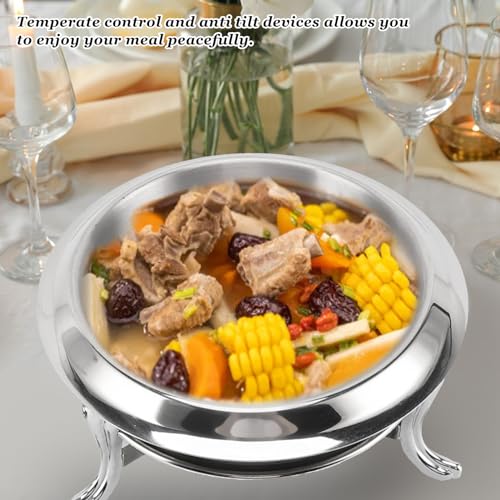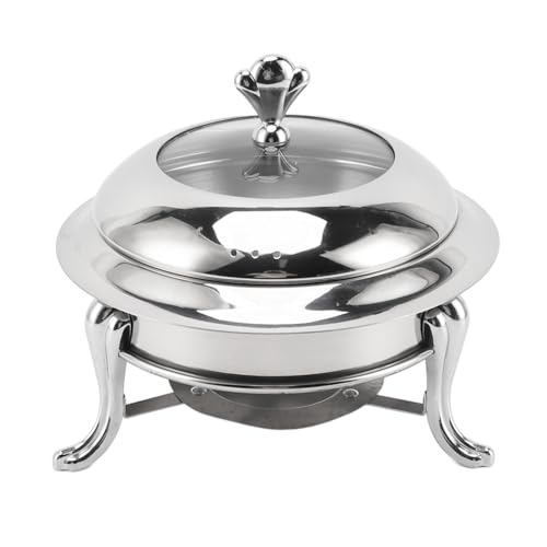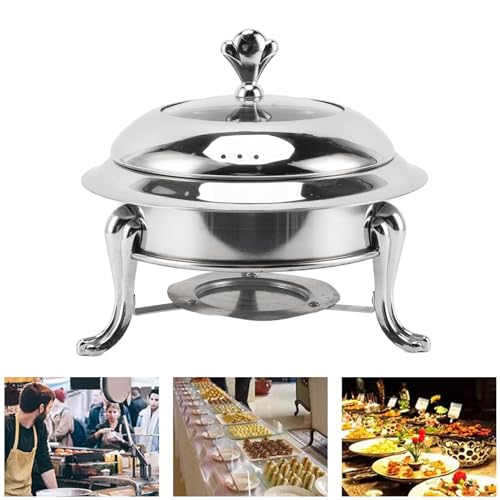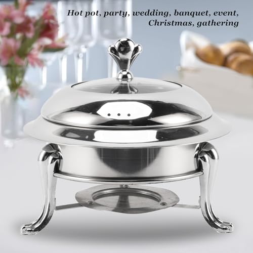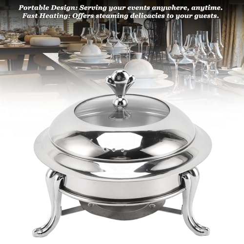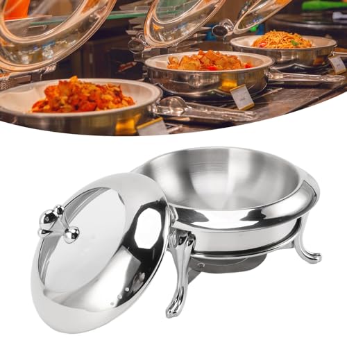Runder Buffetwärmer mit Deckel, Tragbarer Catering-Server mit Kraftstoffheizung aus Edelstahl für Hochzeitsbankette, Vielfältige Verwendungsmöglichkeiten, Tragbares Design, (22cm)