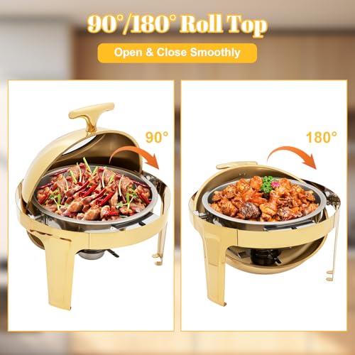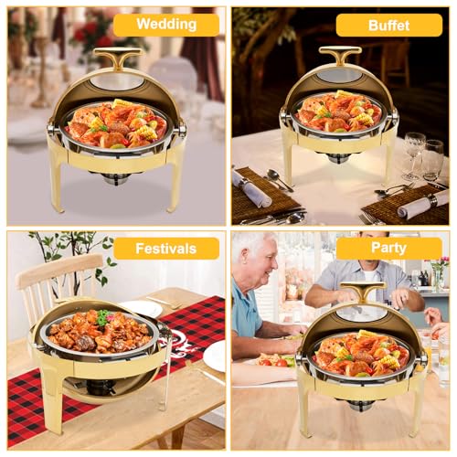 Rundes Chafing Dish Buffet-Set, 6,3 Qt rundes Catering-Wärmer-Set mit Speise- und Wasserschalen, Spiegel-Deckel, dicker Standrahmen, Buffet-Wärmer für Catering, Events, Partys, Hochzeiten, Abendessen