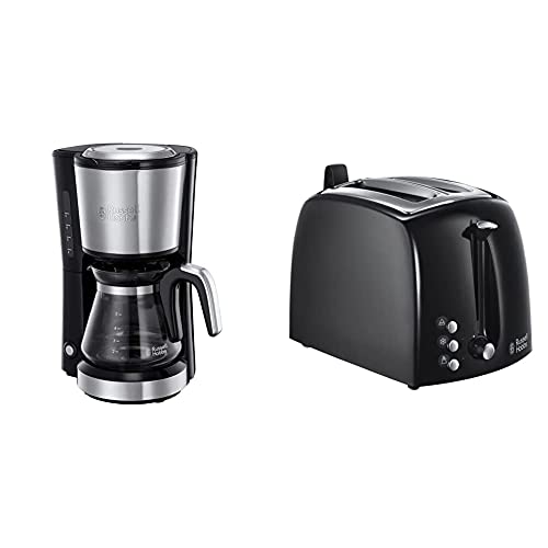 Russell Hobbs Mini-Kaffeemaschine Compact Edelstahl, 0,6l Glaskanne, bis 5 Tassen, Permanentfilter & Toaster Textures…