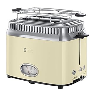 Russell Hobbs Toaster [für 2 Scheiben] Retro Edelstahl Creme (Countdown-Anzeige im Retrodesign, inkl. Brötchenaufsatz, 6…