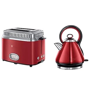 Russell Hobbs Toaster Retro Rot 21680-56 (1300W, Countdown-Anzeige im Retrodesign, Brötchenaufsatz, 6 einstellbare…
