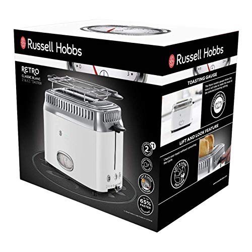 Russell Hobbs Toaster Retro weiss, Countdown-Anzeige im Retrodesign, inkl. Brötchenaufsatz, 6 einstellbare…