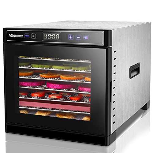 Automatische doppelte Zeit- / Temperaturregelung: Stattdessen eine schnelle Ersttrocknung bei höherer Temperatur in Betrieb sein lassen und dadurch automatisch auf eine niedrigere Temperatur umschalten, um Nährstoffe und Geschmack zu einsacken. Jedes Mal können bis zu 99 Stunden, Stattdessen im Allgemeinen 198 Stunden kontinuierlichen automatisierten Betrieb, eingestellt werden.
